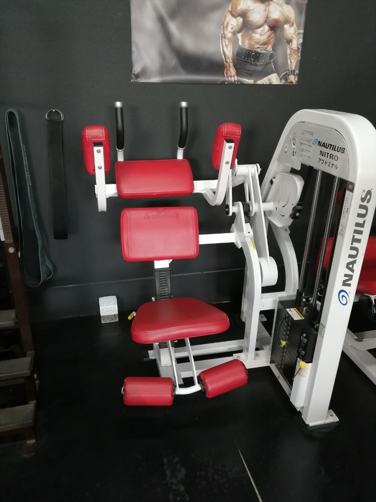 こちらのマシンは胸を開いたり閉じる動作を寝て行う珍しいタイプのマシンです。